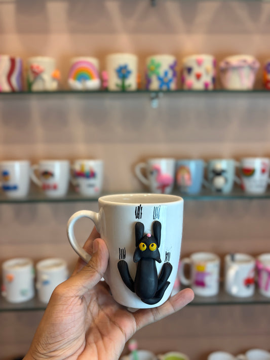 Handmade 3D Ceramic Cat Mug – Scratching Cat Design for Cat Lovers